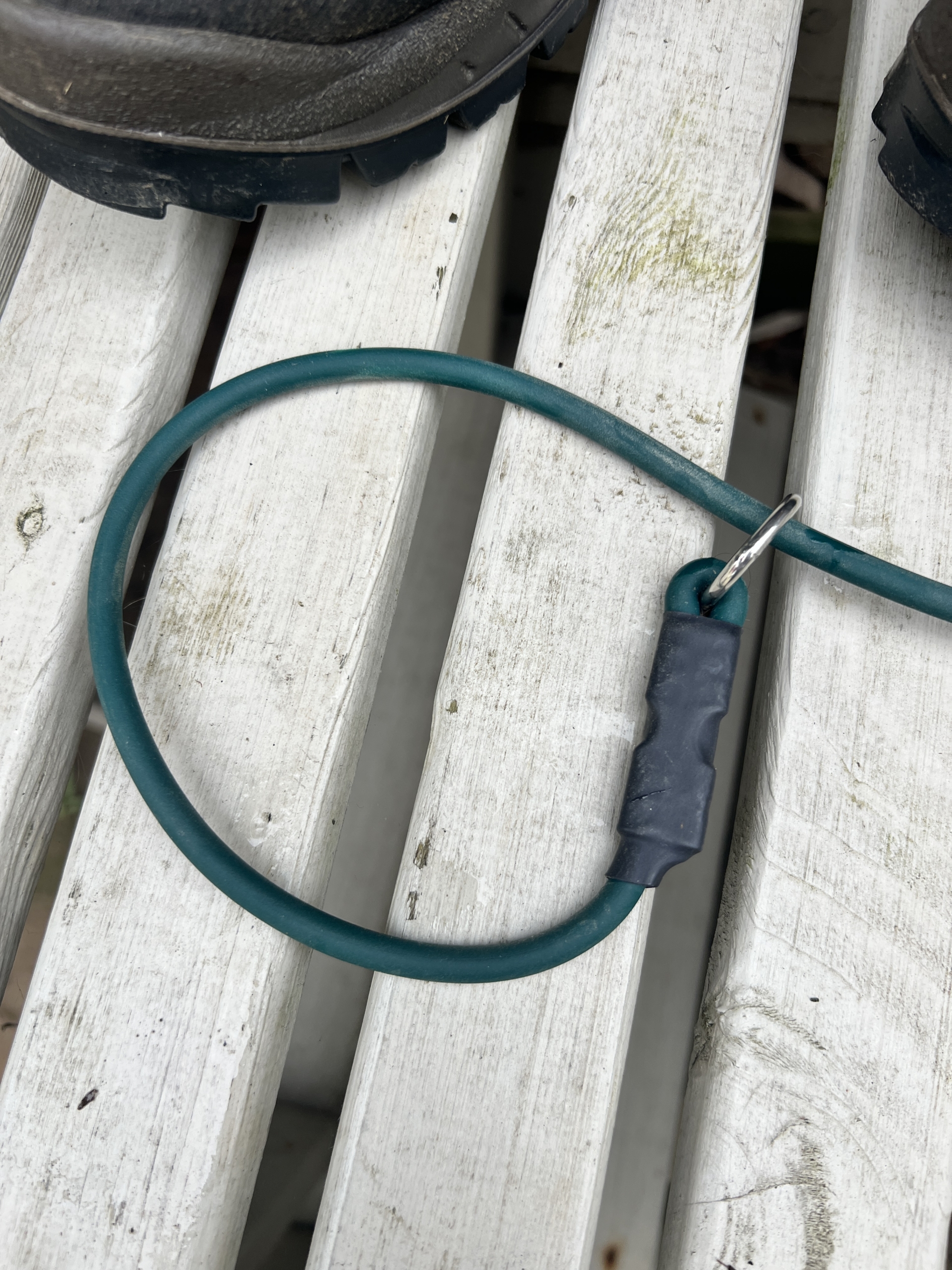 This flexible round Beta Biothane coated rope has a diameter of circa 6 mm and comes with a breaking strength of circa 181 kg.